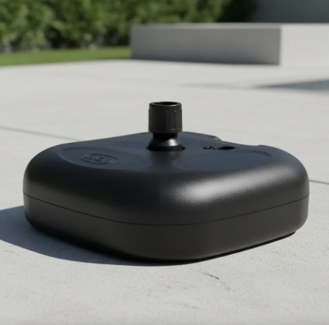 • Hecha de polietileno, se puede llenar con 18 litros de agua o 22 kg de arena para asegurar tu sombrilla en cualquier lugar.