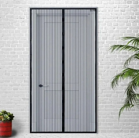 Simplemente con una pequeña presión se abrirá y cerrara solo, incluso para mascotas. Se mantiene continuamente cerrado y se separan los paños al atravesarlo, cerrándose inmediatamente detrás de quien lo cruce. Está compuesto por dos paños tipo cortina, con dos canales centrales por donde se enhebran listones flexibles de imán (cintas), que tienen excelente adherencia entre sí, no permitiendo el paso de insectos y pudiendo ventilarse los ambientes prácticamente como estando con la puerta totalmente abierta.