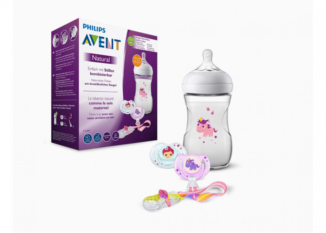AVENT BIBERON NATURAL DECORADO UNICOMIO ROSA 260ML